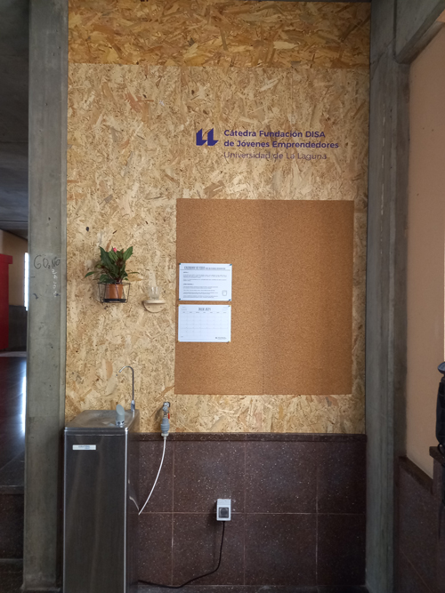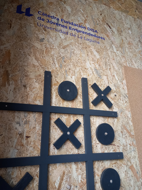 Nos pidieron cubrir dos paredes en la Faculta de Económicas y Empresariales de la Universidad de La Laguna para un evento de emprendeduría de la cátedra de jóvenes emprendedores de la Fundación Disa, pero como somos muy desobedientes, planteamos algo mucho más complejo con el objetivo de que fueran dos lugares que se prestaran para la interacción, el disfrute, aprendizaje, información, etc.
